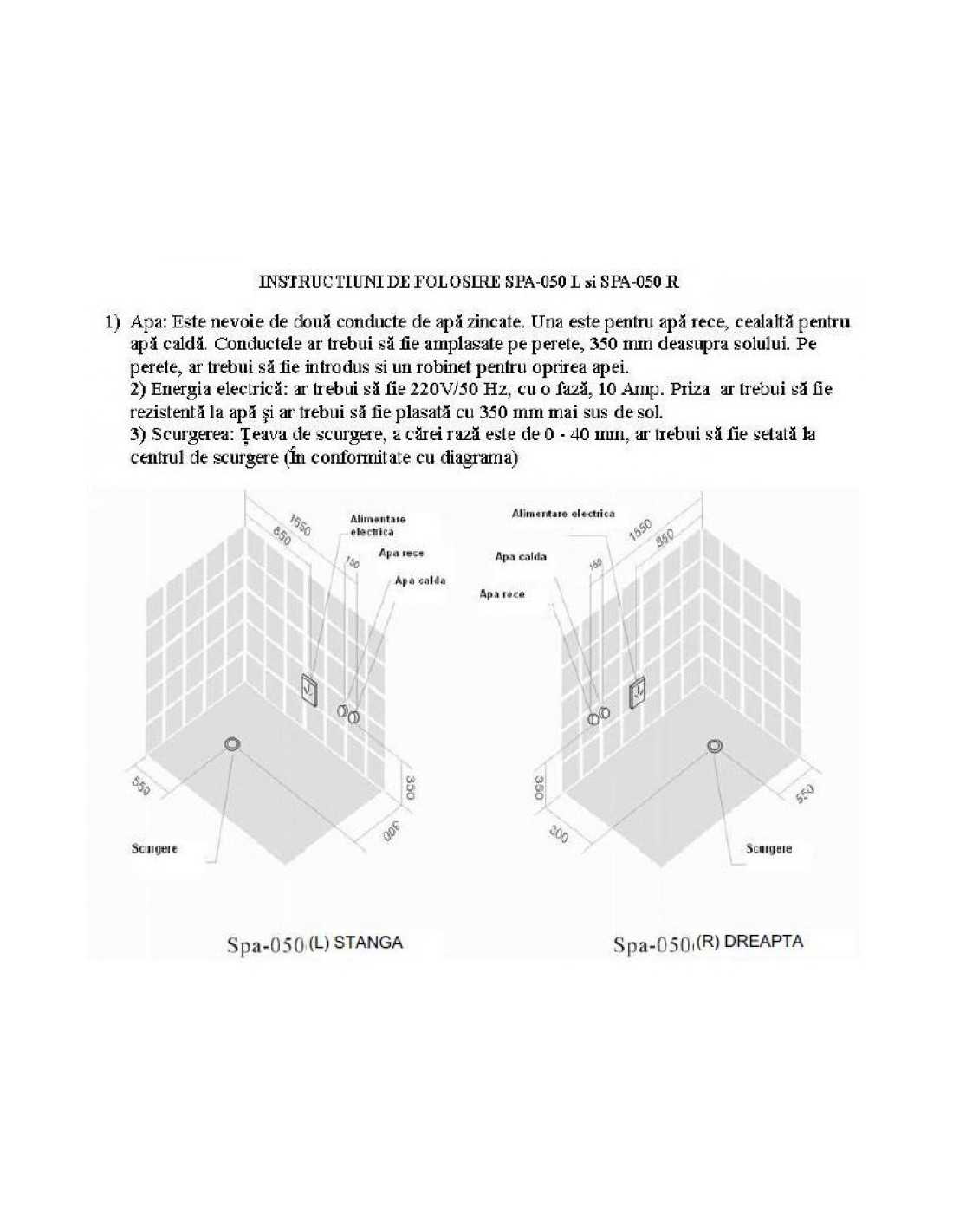 Foarte IMPORTANT: Inaintea montajului, va rugam asigurati-va ca: